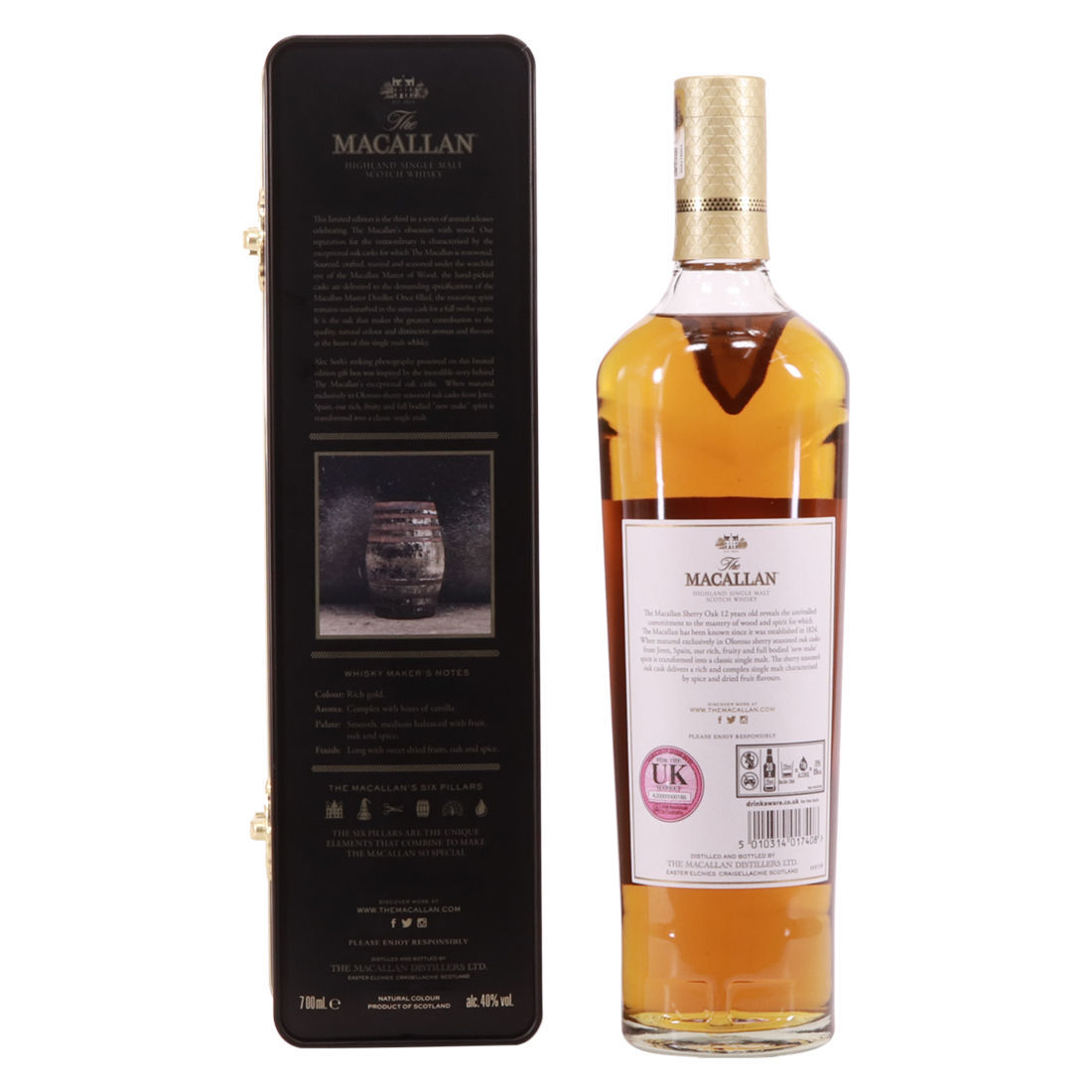 This limited-edition Macallan 12 Year Old was exclusively matured in sherry seasoned oak casks, from Jerez. It comes in a presentation tin featuring an image of a barrel shot by Magnum photographer Alex Soth.