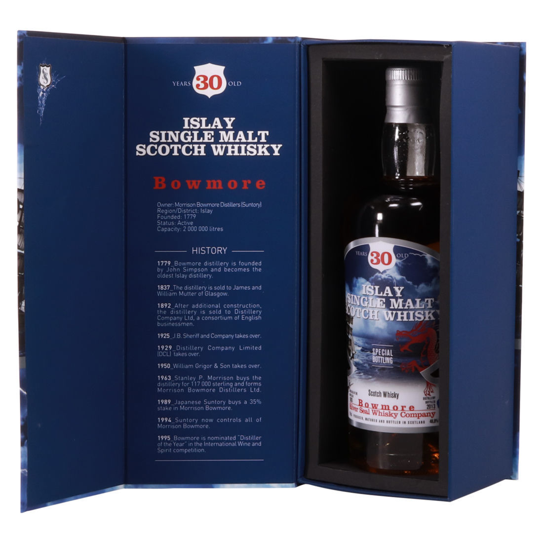 A Bowmore 30 year old single malt, bottled by Silver Seal. It was distilled in 1983 and bottled in 2013. This is a very limited release of just 152 bottles.