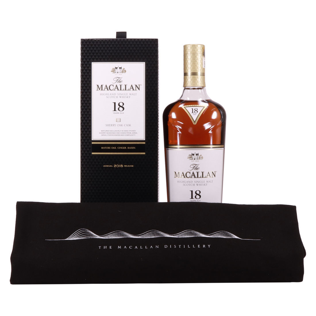 This annual release of The Macallan's popular 18 Year Old Sherry Oak is matured exclusively in sherry seasoned casks, built from both Spanish and American oak, providing a beautifully dark flavour with rich aromas.