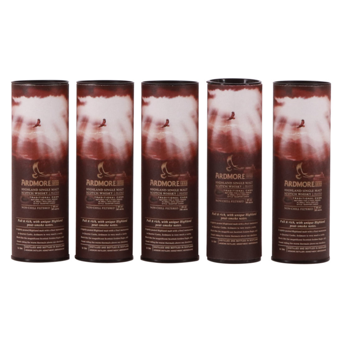 5 miniatures of young peated Highlander from the excellent Ardmore distillery, which has been finished in quarter casks to speed up maturation. Gold Medal in its category at the World Whisky Awards 2010.
