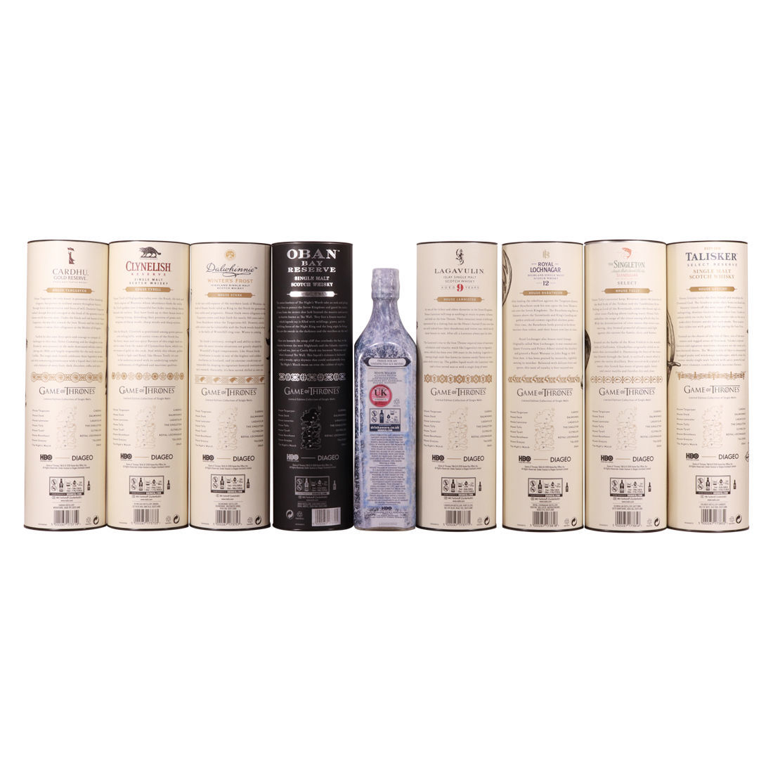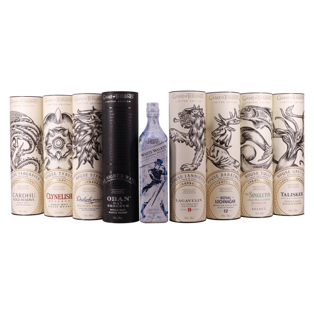 Each of the Game of Thrones Scotch whiskies has been paired with a particular house from the seven kingdoms in the television series, plus the Night's Watch guard.
