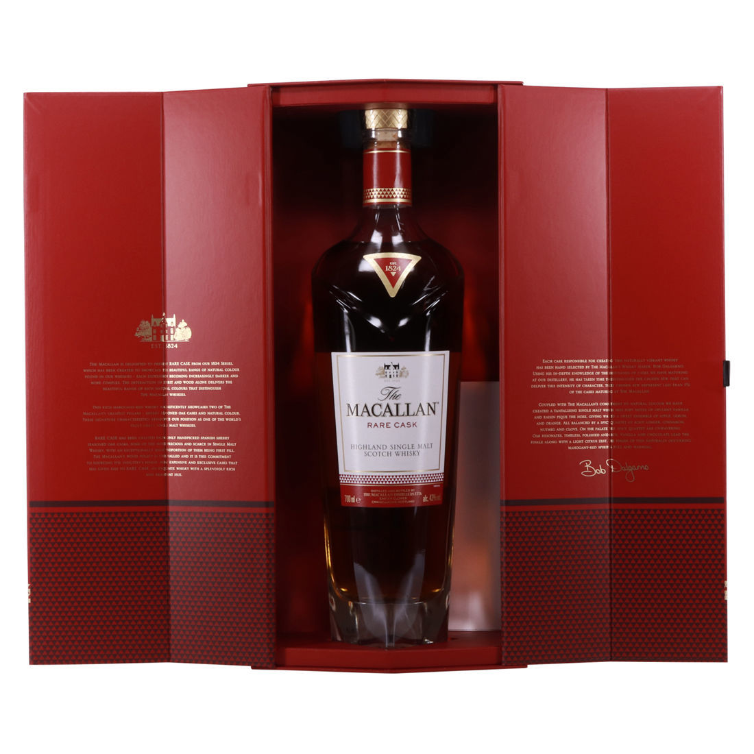 The Macallan Rare Cask is comprised of 16 different sherry-cask styles, the majority of which are first fill. Rich and complex with notes of dark honey and dried fruit, this bridges the gap between The 1824 Series and The 1824 Collection.