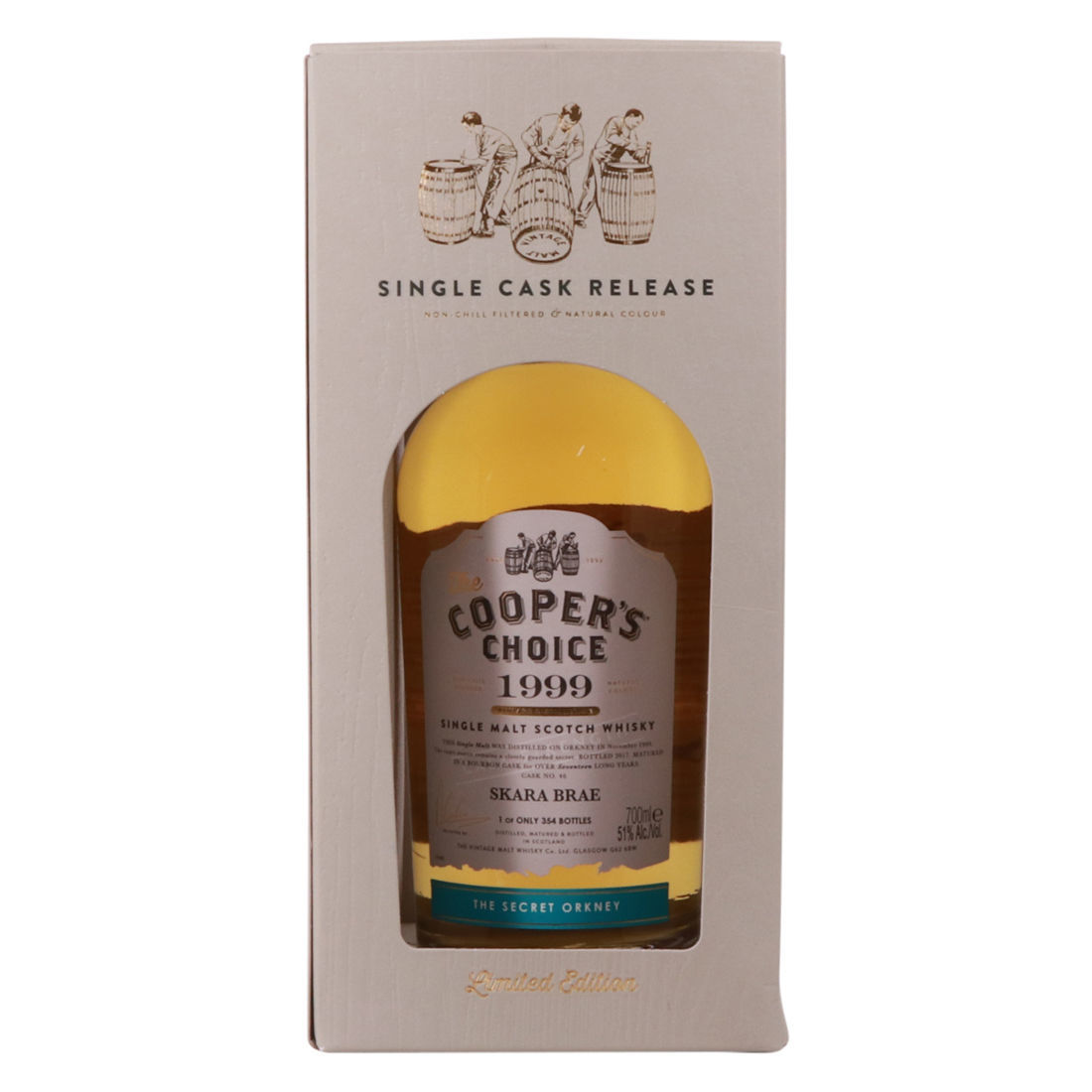 This single malt was distilled in Orkney in 1999 and matured in a bourbon cask for 17 years. It was bottled by The Vintage Malt Whisky Co. as part of the Cooper's Choice range.