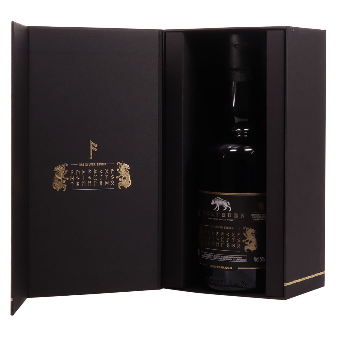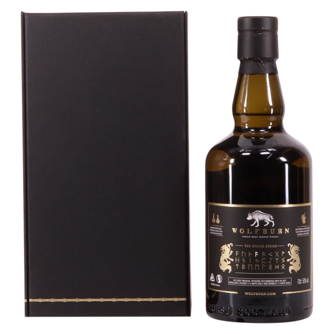 It is the first Kylver release to be made from peated spirit and thus the first in a dark green bottle (a green Wolfburn bottle generally indicates a peated expression inside). It was matured for around 4 years in a mix of first-fill bourbon barrels and second-fill quarter casks.