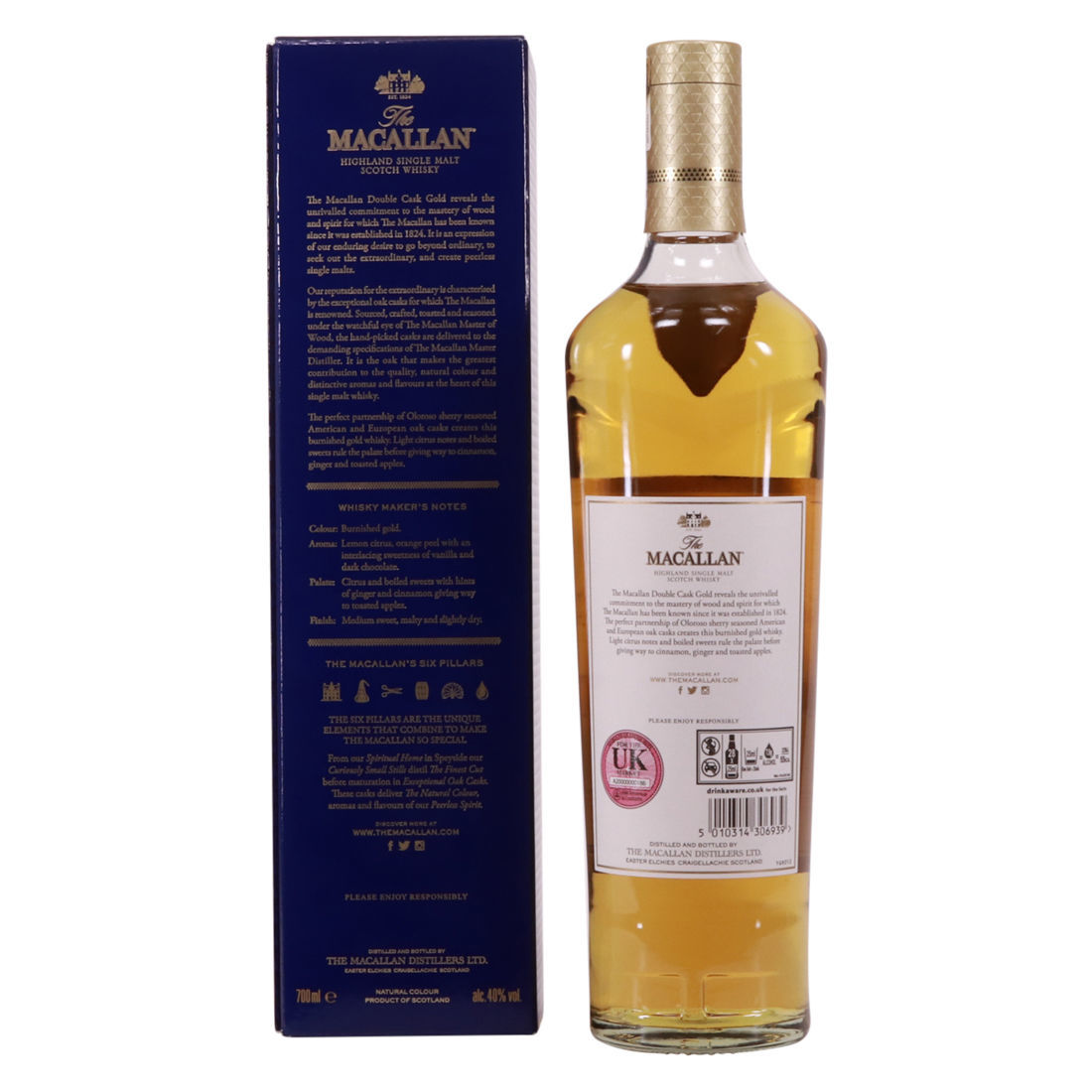 Macallan Gold was first introduced in 2012 as part of the distillery's 1824 range of non-age statement expressions, before being renamed Macallan Gold Double Cask in 2018 as part of the new core range. Matured in a combination of first fill and refill American oak and European oak sherry casks to create an incredibly smooth and rich single malt. Soft gold in colour, this is the lightest expression of the Macallan range, but still packed with typical Speyside Macallan flavours.