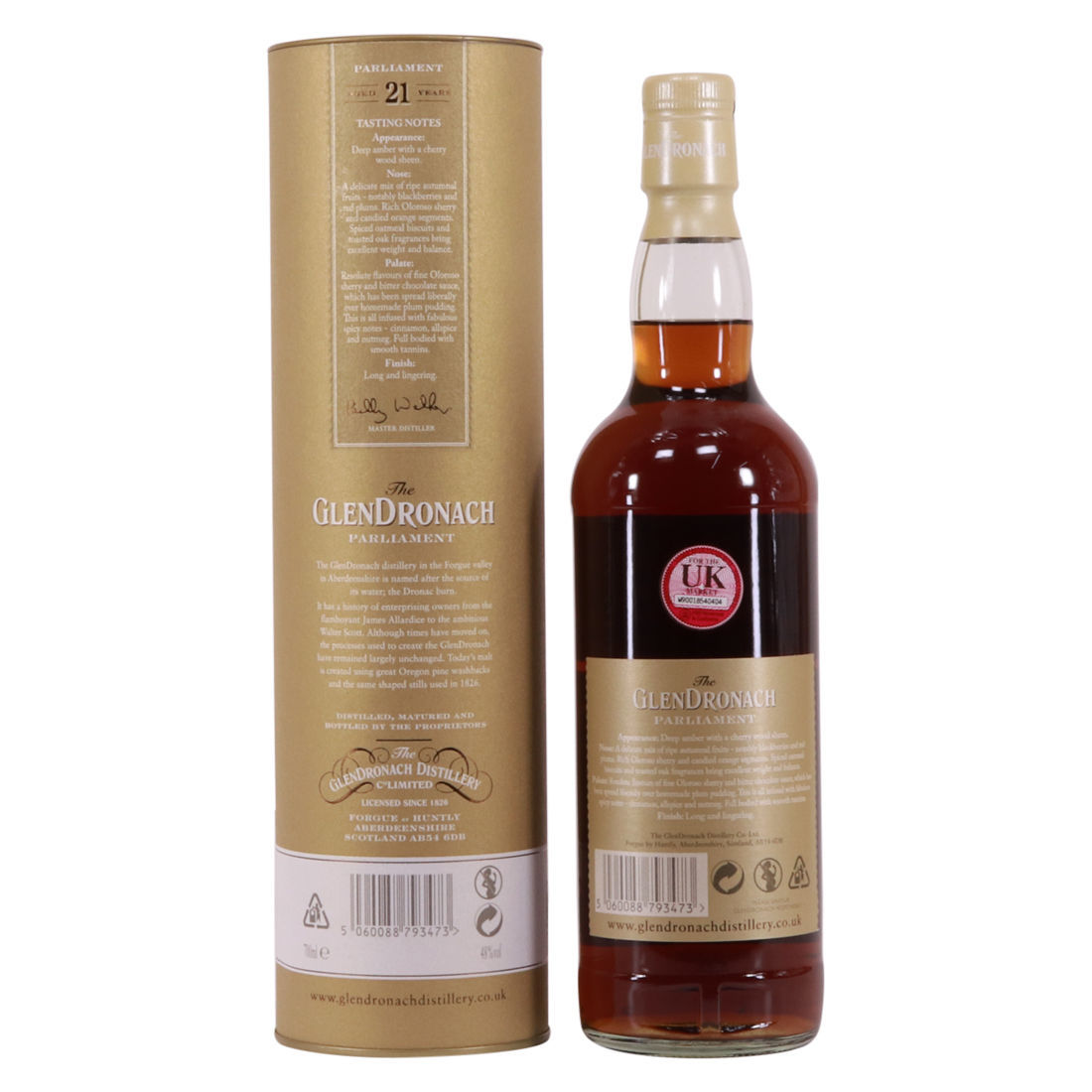 Released in 2011 by Glendronach Distillery, this bottling was named after the Parliament of rooks that lives in the trees near the distillery. The single malt has been aged in a mix of sherry casks (Oloroso and sweet Pedro Ximenez dessert sherry).