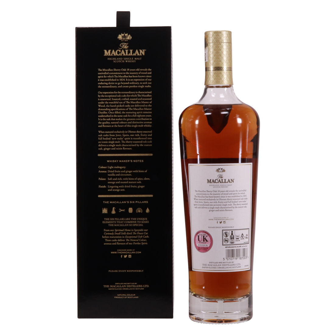 This annual release of The Macallan's popular 18 Year Old Sherry Oak is matured exclusively in sherry seasoned casks, built from both Spanish and American oak, providing a beautifully dark flavour with rich aromas.