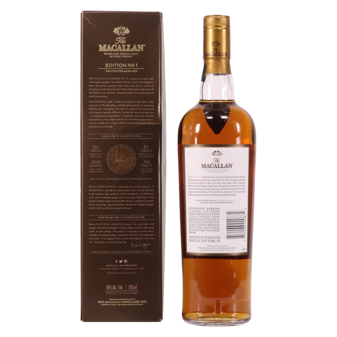 The Macallan Edition No. 1 is the debut expression in the Edition Series. This is a limited edition drawn from eight European and American oak cask styles selected for their unique characteristics.
