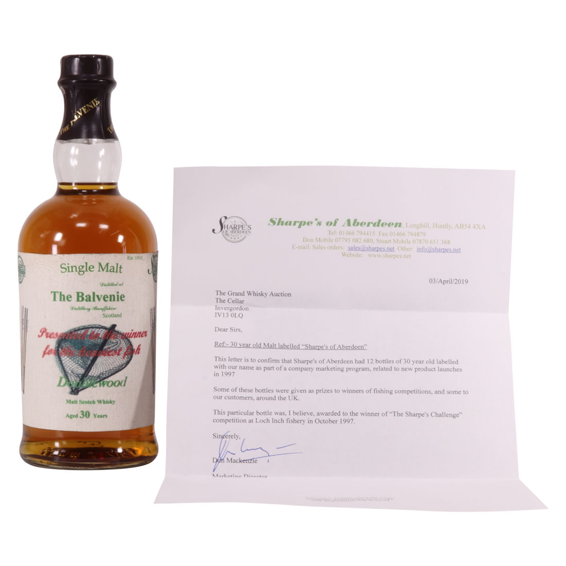 This Balvenie 30 Year Old comes with a letter of authenticity from Sharpes of Aberdeen.