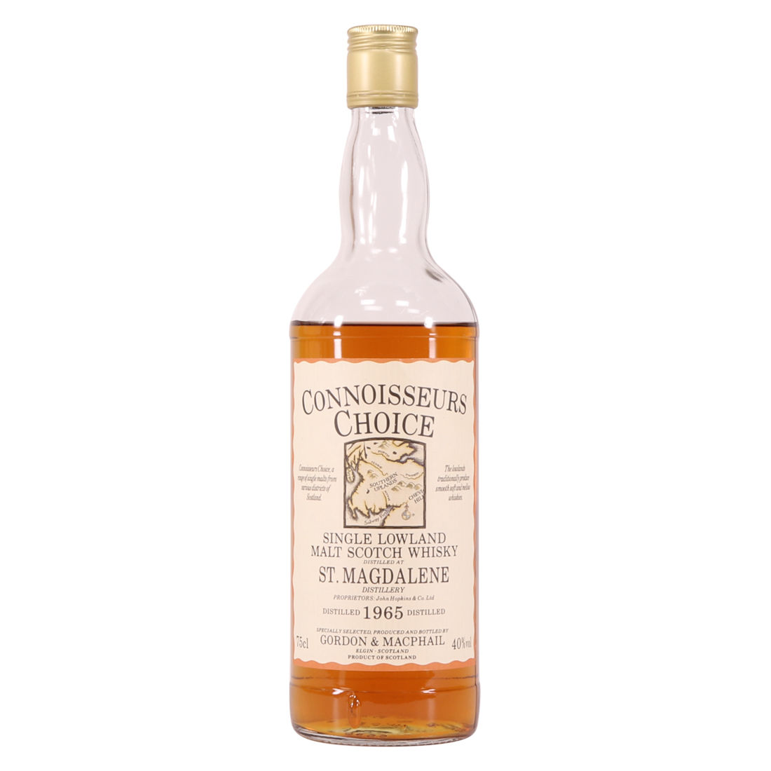 This particular single malt was distilled in 1965. It was bottled at 40% abv by Gordon and MacPhail for their Connoisseurs Choice range. This bottle has a low fill level but the seal is still intact and there is no sign of leakage.
