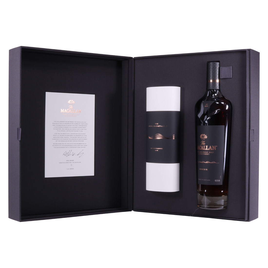 The Macallan Genesis Limited Edition marks the creation of the iconic Distillery in a unique collaboration with internationally acclaimed architects Rogers Stirk Harbour + Partners. Released in August 2018, the special edition bottling commemorates the unveiling of the brand new Macallan Distillery which opened in June 2018.