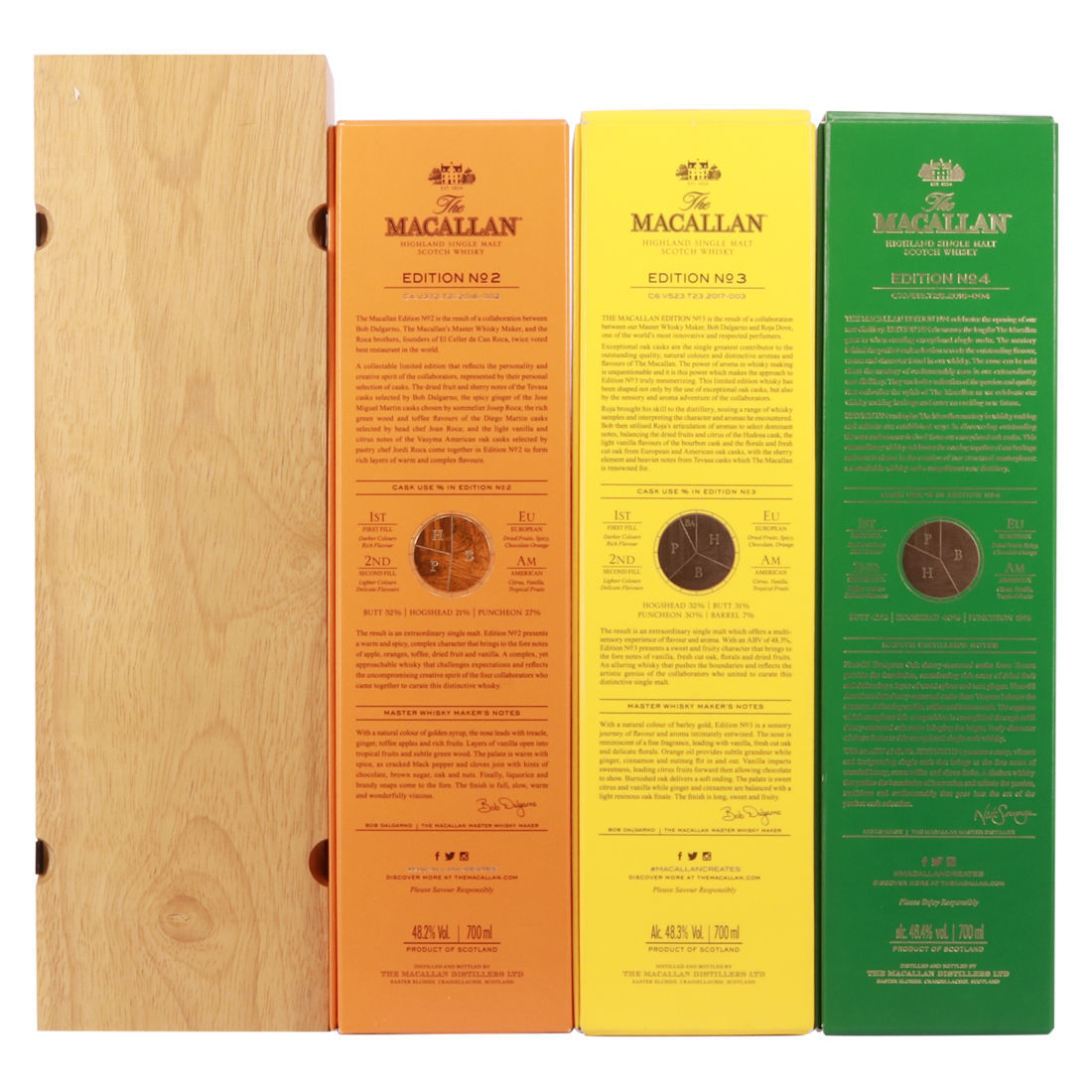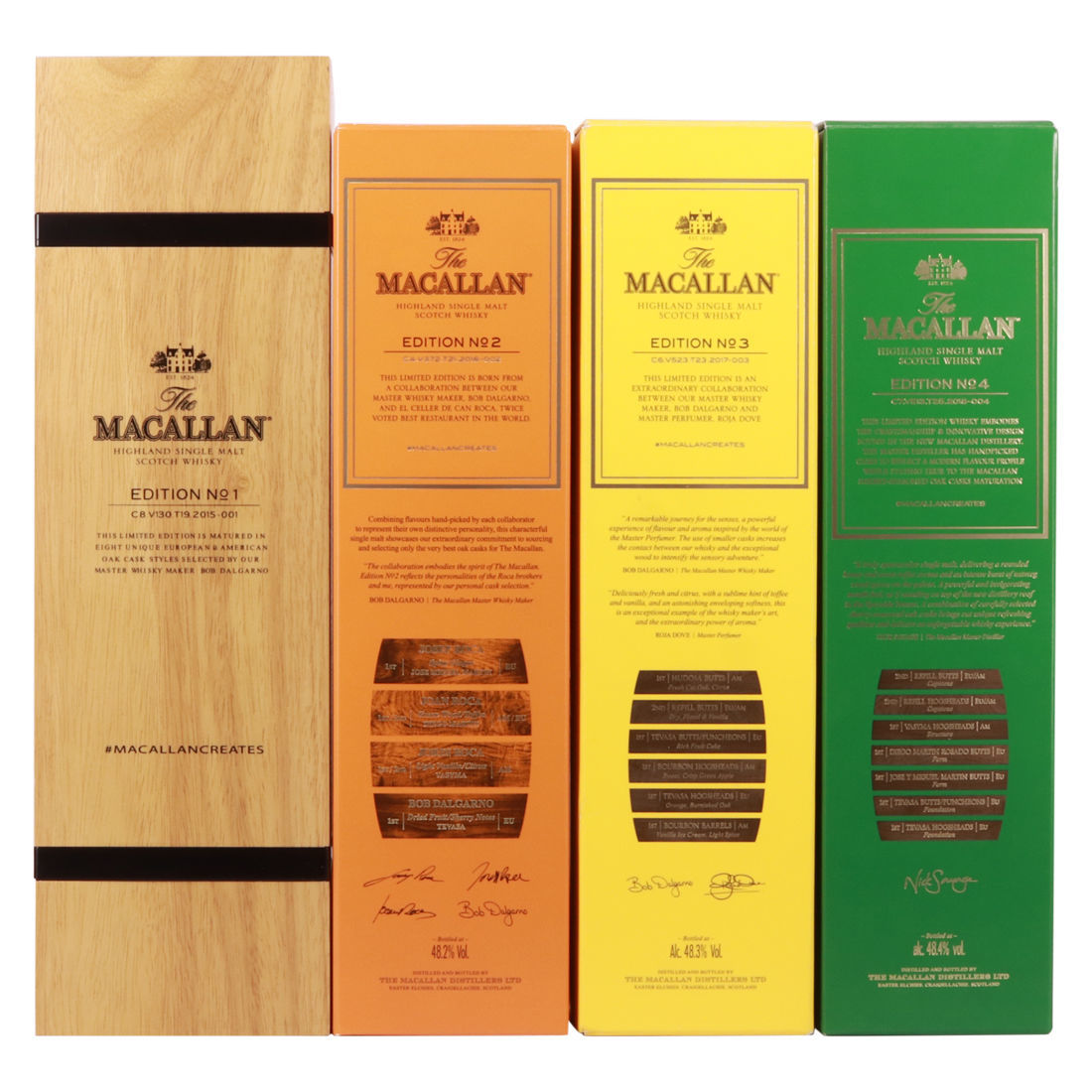 This lot brings together the Macallan Edition set comprising of Edition no. 1, 2, 3 and 4 in the annual limited edition series.