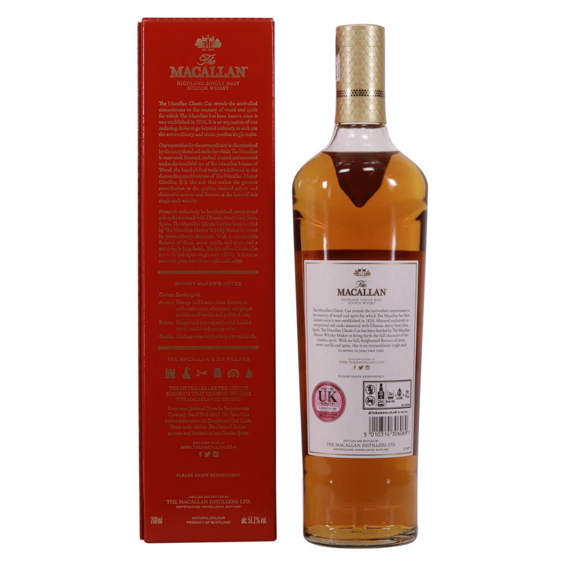 The Macallan Classic Cut - 2018 edition is the second release in the limited annual series. It was matured exclusively in hand-picked oloroso sherry oak casks from Jerez, Spain, before being bottled at 51.2% ABV.