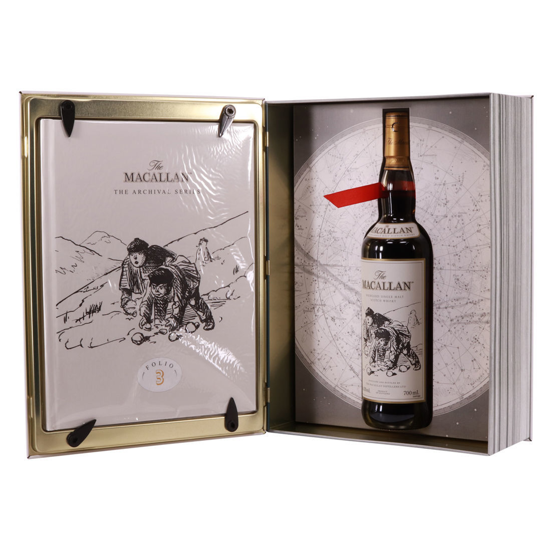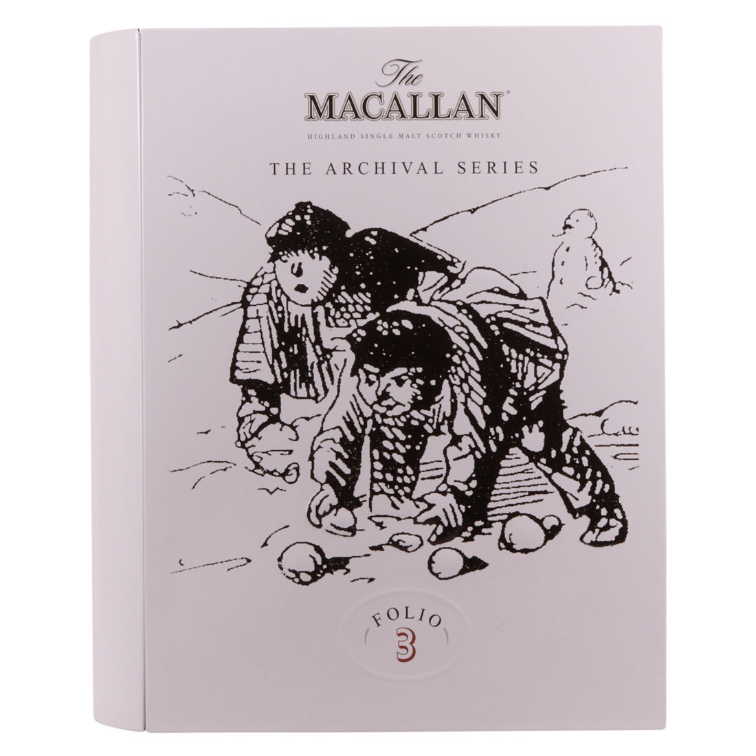 The theme of the Folio 3 is Macallan's advertising campaigns from the 1980s and 1990s. The presentation includes a book containing the best of these. The illustration on the box is from an advert used in a Victorian-era edition of Punch Magazine. It is intended to capture the sentiment that whisky is best produced in cold weather - a remark that Macallan claim was made on their very own estate at Easter Elchies.