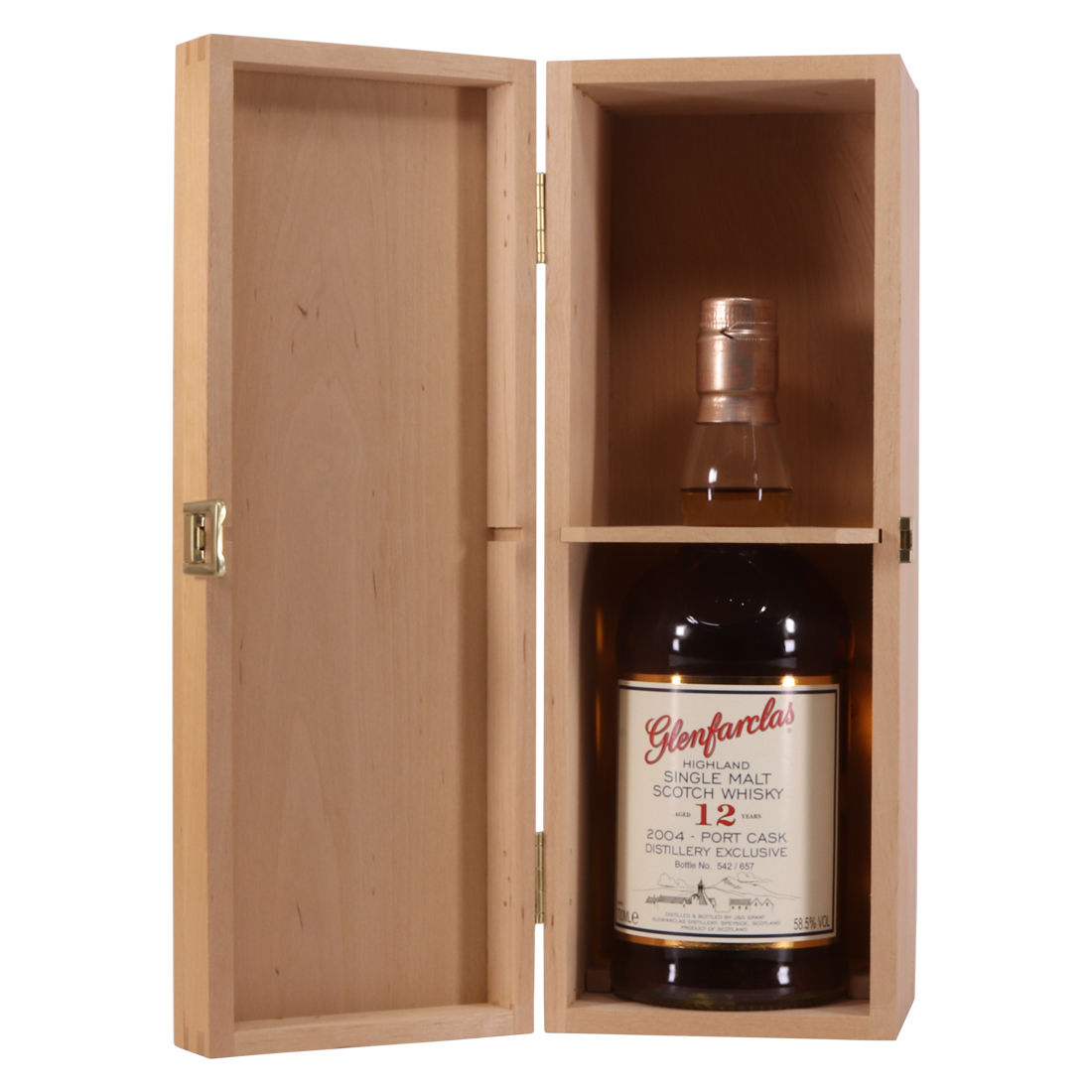 This is a distillery exclusive release from Glenfarclas. This 12 year old single malt was matured entirely in Port casks before being bottled at 58.5% ABV. It was a release of only 657 individually numbered bottles.