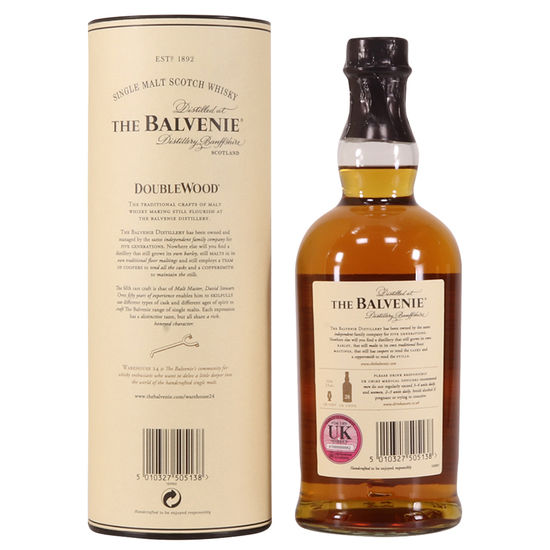 To make The Balvenie DoubleWood, The Balvenie Malt Master, David Stewart MBE takes whisky that has spent at least 12 years in traditional whisky casks, American Oak ex-bourbon barrels and hogsheads, and moves it to Spanish oak ex-Oloroso sherry casks for an additional nine months.