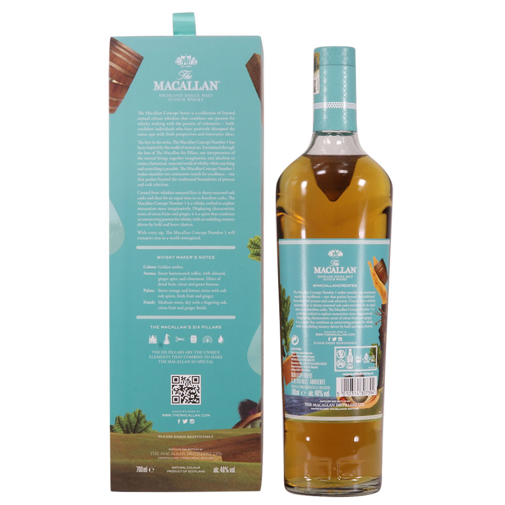 Number 1 is inspired by surrealist art - with the label depicting the Macallan Six Pillars in the style of surrealism - which is apparently echoed through the innovation of their slightly different maturation process in the production of this release.