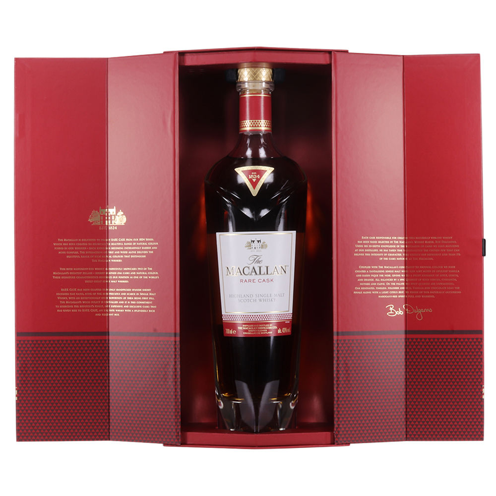 The Macallan Rare Cask is comprised of 16 different sherry-cask styles, the majority of which are first fill. Rich and complex with notes of dark honey and dried fruit, this bridges the gap between The 1824 Series and The 1824 Collection.