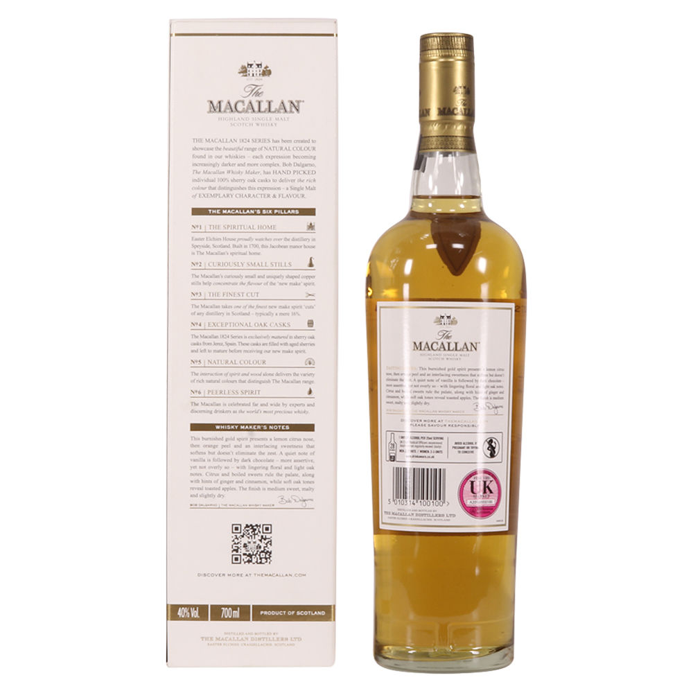 The Macallan 1824 Series celebrates natural colour. The most distinctive and defining characteristic of Macallan is the sherry-seasoned oak casks that are used to mature the whisky. This series shows commitment to 100% natural colour, drawn from wood. The colour of each expression becomes deeper as the range progresses.