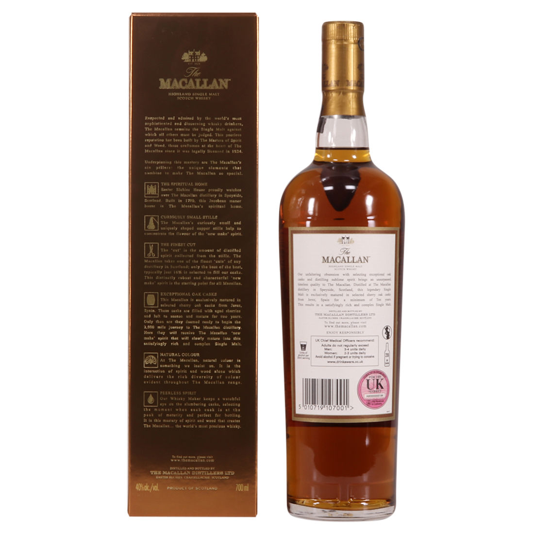 Matured exclusively in oak sherry casks from Jerez in Spain.  This age statement was discontinued by Macallan in 2013.