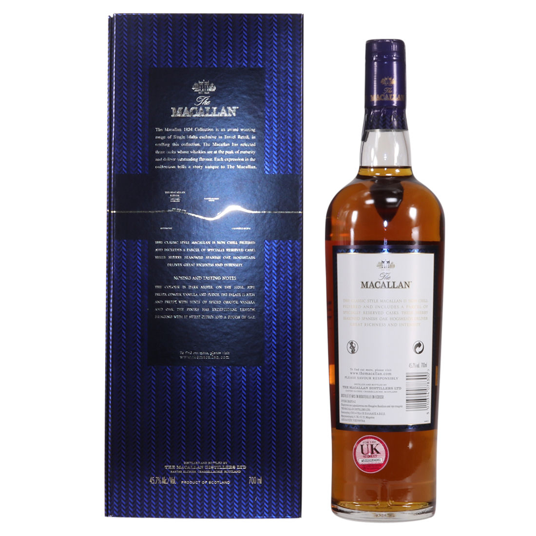 The Macallan 1824 Collection is a travel exclusive collection, available in select airports around the world. This collection is defined by the selection of casks whose whiskies are at the peak of maturity. Each expression showcases the distinct depth of quality of The Macallan.