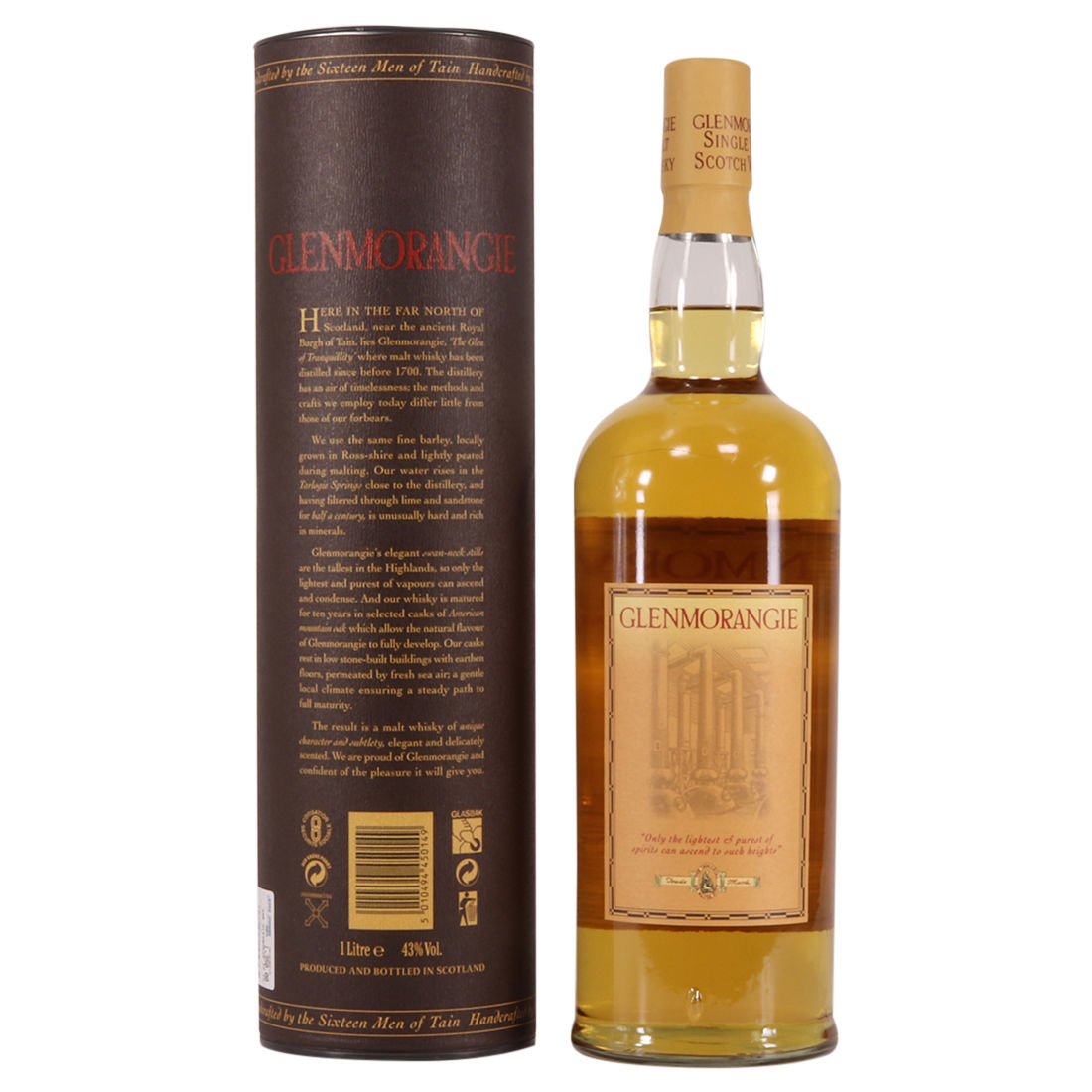 Glenmorangie 10 Year Old single malt Scotch whisky. Old style bottle and label on this Highland classic.