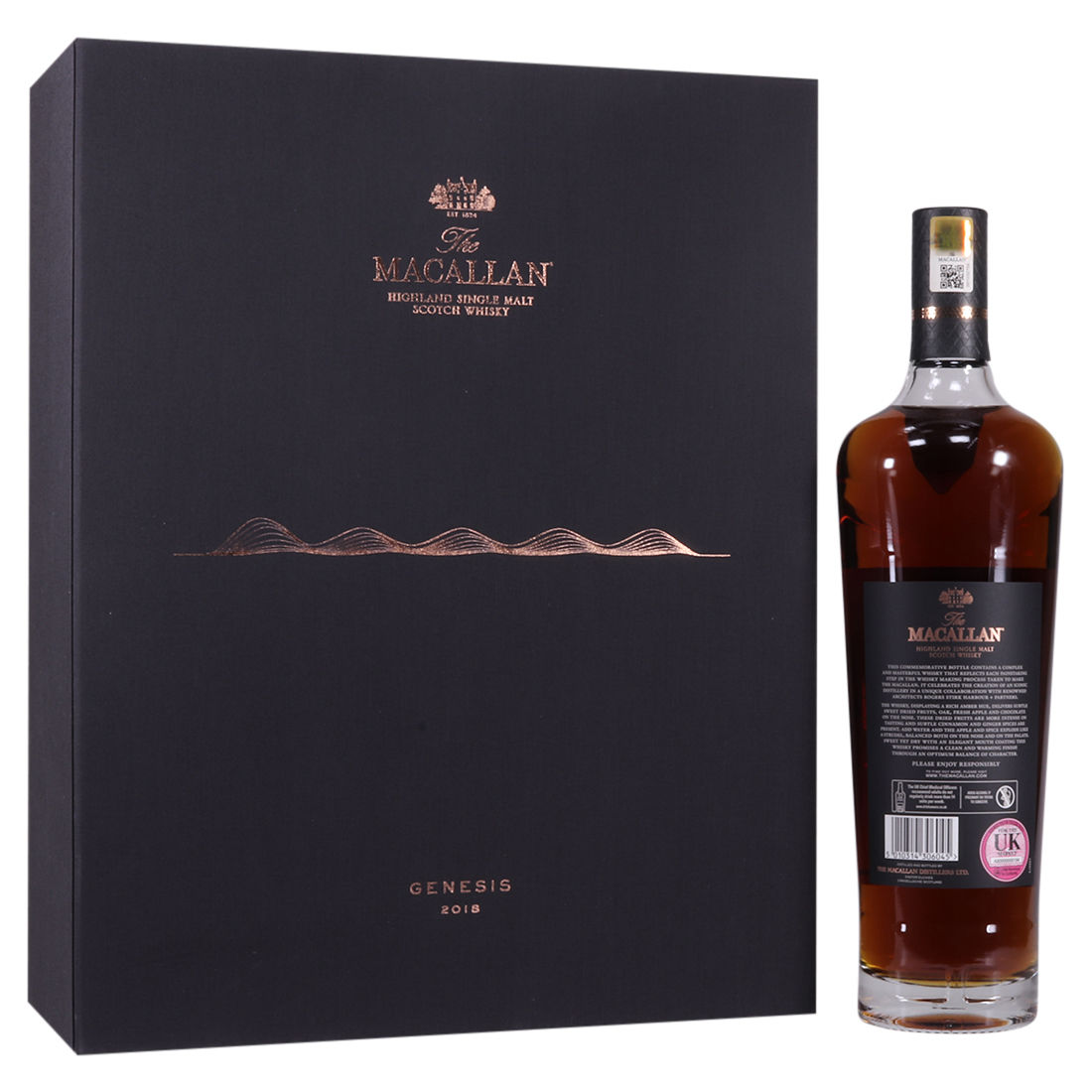 The Macallan Genesis Limited Edition marks the creation of the iconic Distillery in a unique collaboration with internationally acclaimed architects Rogers Stirk Harbour + Partners. Released in August 2018, the special edition bottling commemorates the unveiling of the brand new Macallan Distillery which opened in June 2018.