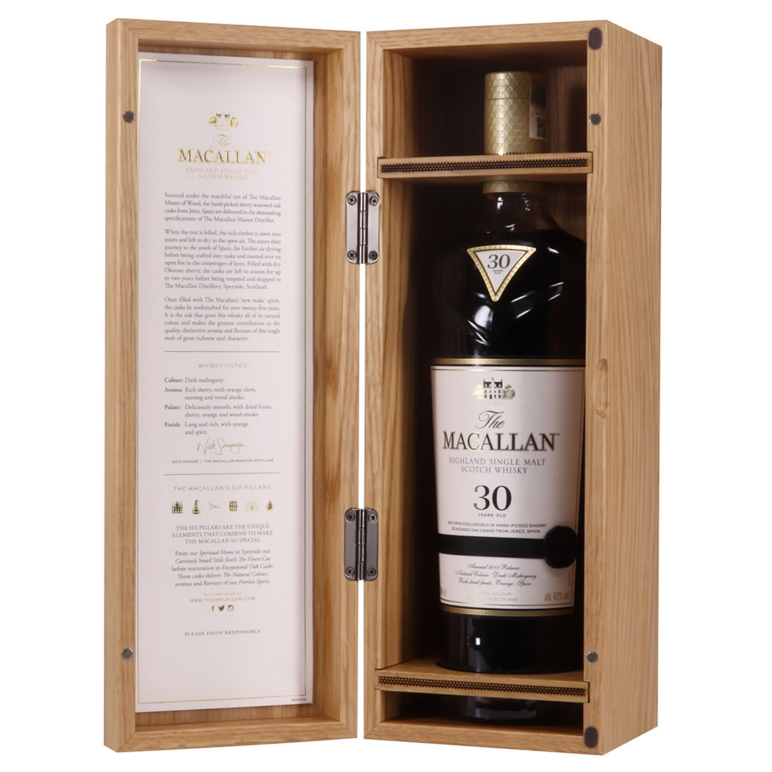 This 2018 release from The Macallan is aged exclusively in Oloroso sherry seasoned casks from Jerez for all thirty years of its maturation. Resultingly, it is said to have a beautiful Oloroso sherry presence after this extended ageing. It is a naturally dark, Speyside single malt full of rich dried fruits, spice and wood smoke.