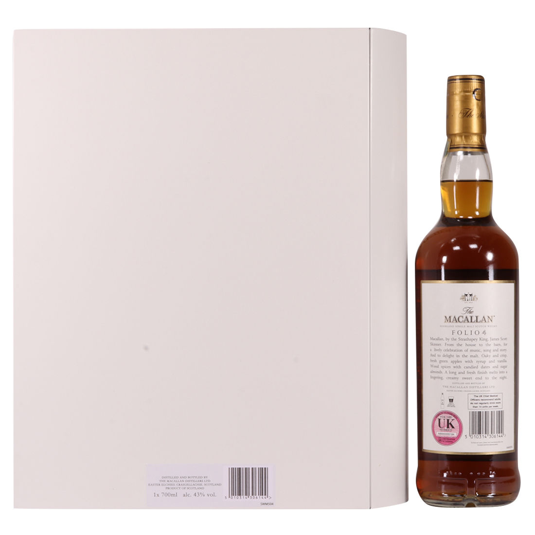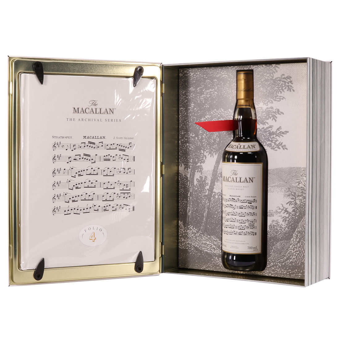 The fourth edition in the Archival Series from The Macallan. Folio 4 remembers the legendary advertising campaigns of the 1970s, 1980s and 1990s that brought The Macallan to the public’s attention outside of Scotland. It is presented in a beautiful book shaped, tin case. It features an advertisement including a Strathspey composed by James Scott Skinner (1843-1927). The advert notes that Skinner was so moved by his favourite malt he created a unique piece of music featuring his signature lilting notes with the simple catchphrase: “The Macallan. The Malt.”