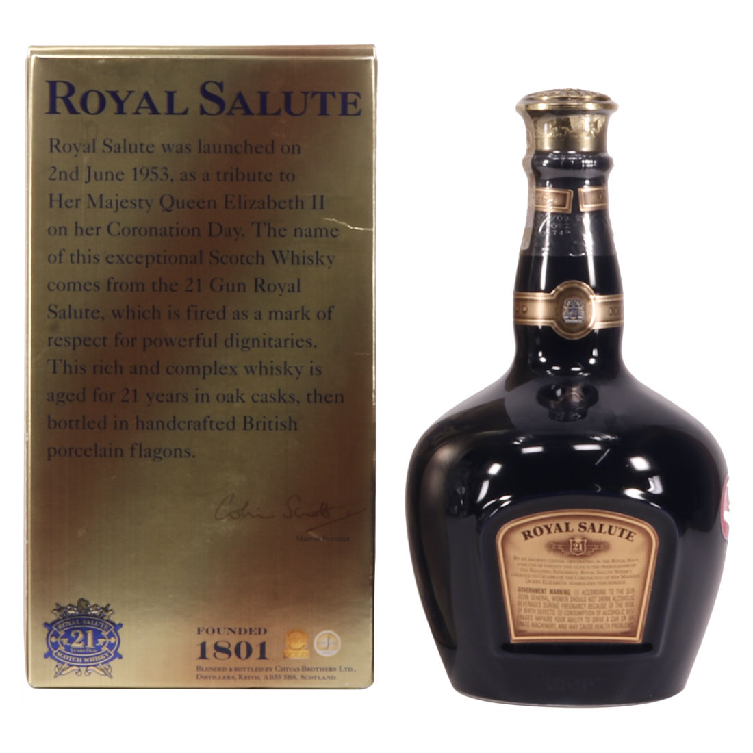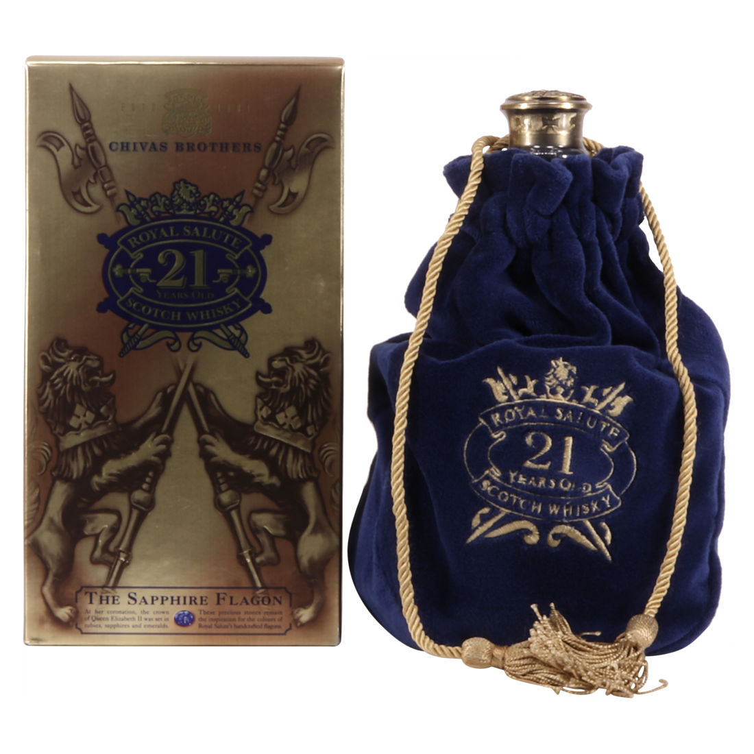 The Chivas Brothers Royal Salute was bottled 21 years of age, in a sapphire flagon.