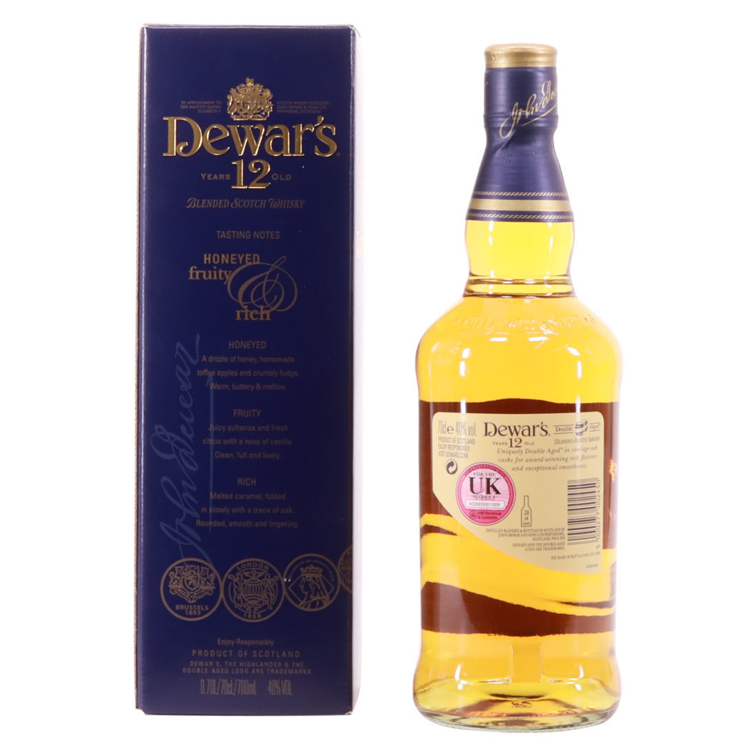This Dewar's 12 year old blend is called 'Double Aged', due to the 6 months of marrying in vintage oak casks that the whisky does after initial maturation and blending.