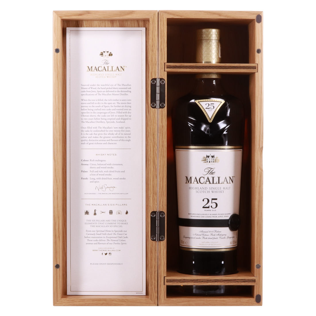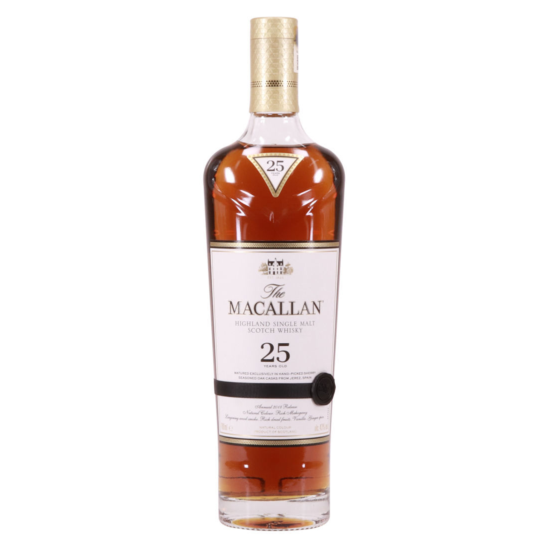 The Macallan 25 Year Old Sherry Oak 2018 release is part of Macallan's super popular Sherry Oak range. This 25 year old has been matured exclusively in hand-picked, sherry seasoned oak casks from Jerez, Spain.