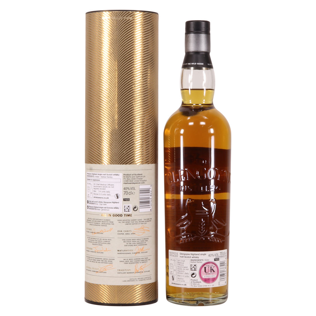 A limited edition produced exclusively for Marks & Spencers. The single malt, distilled over 14 years ago, was left to mature in specially selected oak casks which previously held Oloroso sherry. The oak provides its natural golden colour - there’s no added caramel.