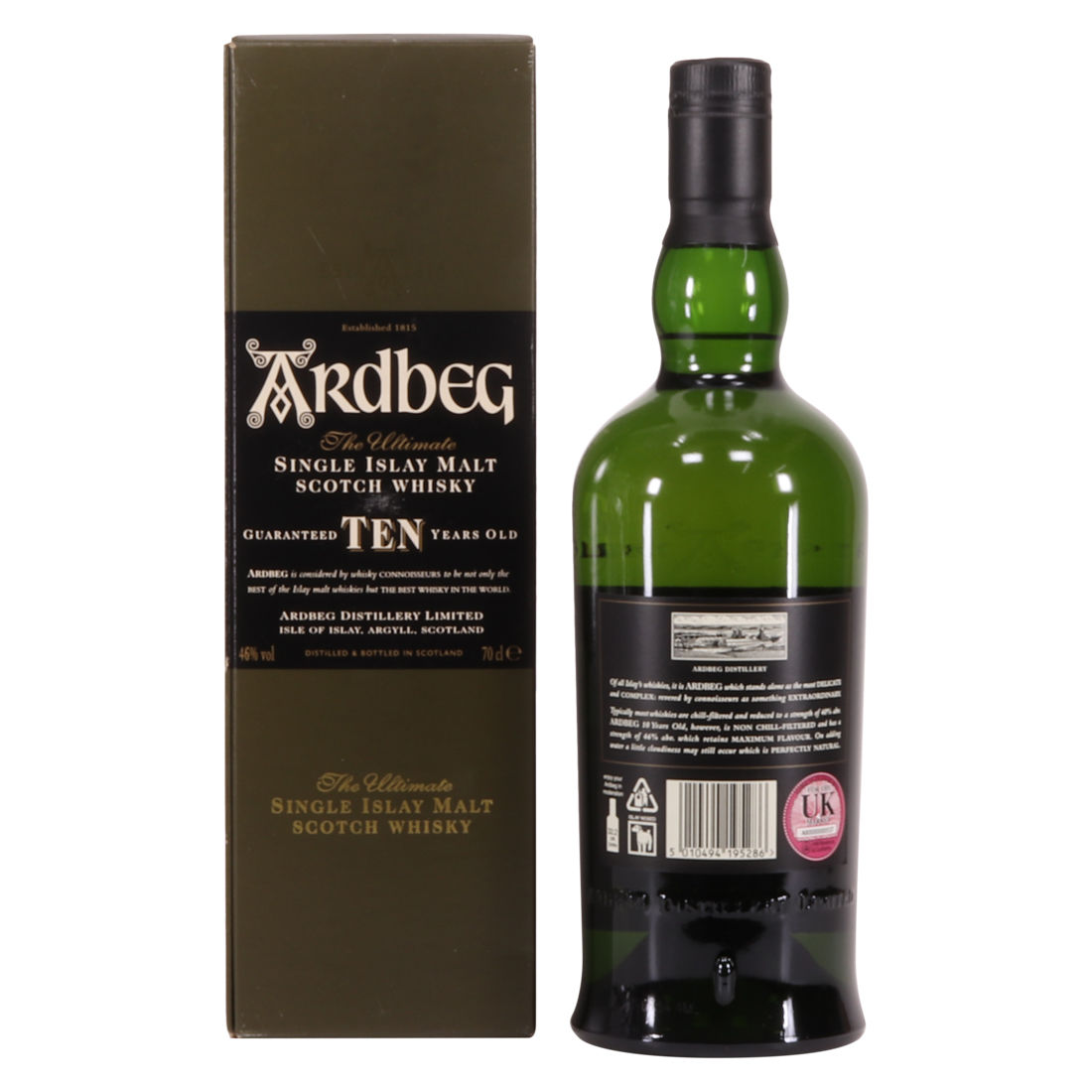 Ardbeg Ten Year Old is known around the world as the peatiest, smokiest, most complex single malt of them all. Yet it does not flaunt the peat; rather it gives way to the natural sweetness of the malt to produce a whisky of perfect balance. Named World Whisky of the Year in 2008.