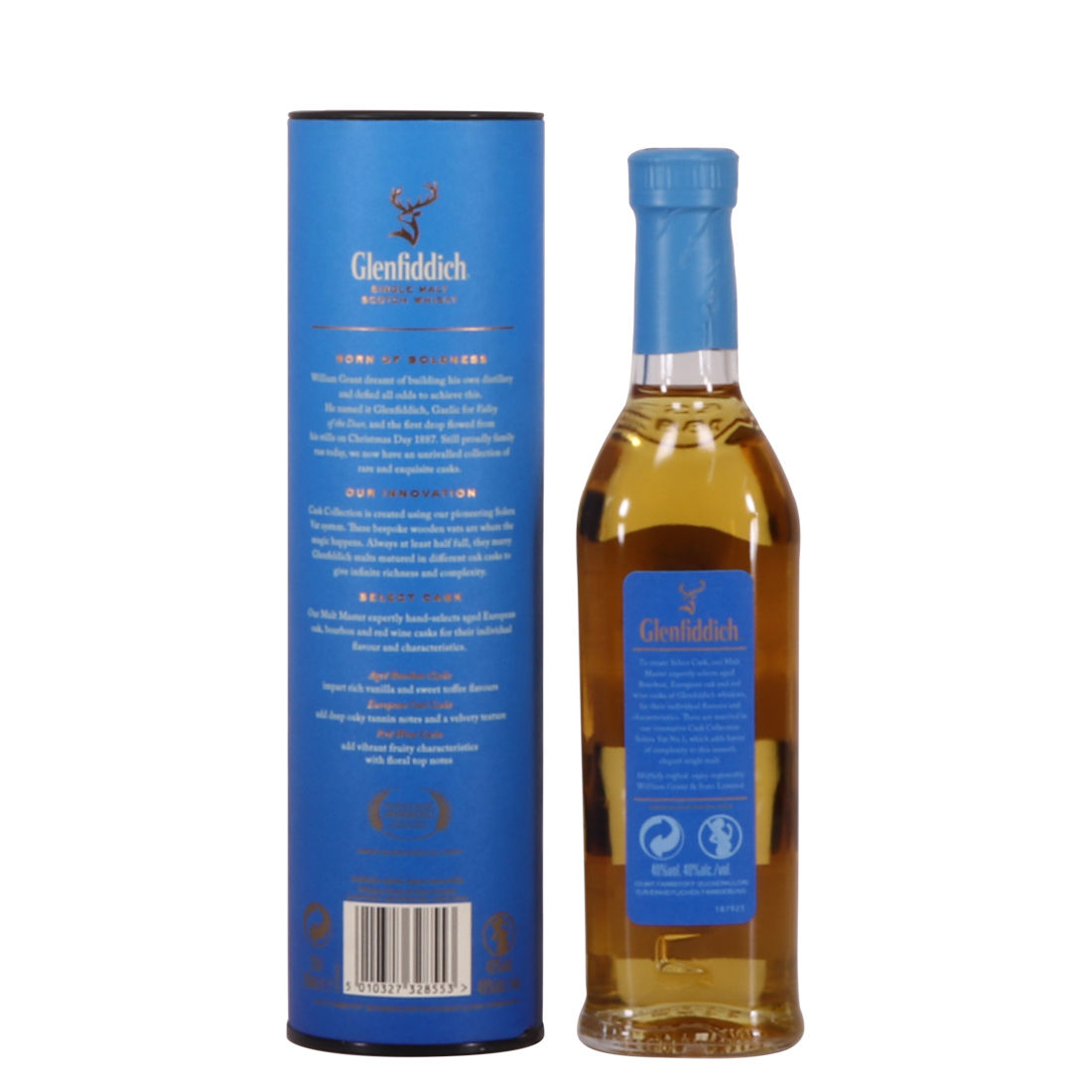 This 20cl eye-catching redesign is part of The Glenfiddich's Travel Retail Cask Collection range. The Speyside single malt is made with casks specially selected by malt master Brian Kinsman, then married in a Solera system.