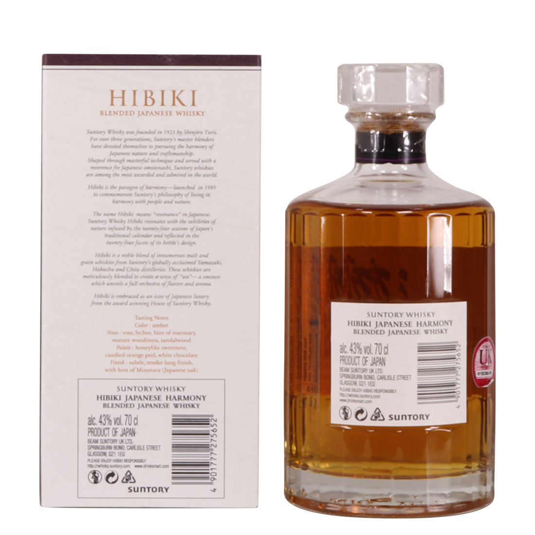 Hibiki Japanese Harmony is made with malt whiskies from the Yamazaki and Hakushu distilleries, as well as grain whisky from the Chita distillery. The whiskies are drawn from 5 different types of cask, including American white oak casks, Sherry casks and Mizunara oak casks. The blend itself was crafted by the Suntory Whisky blending team, led by Master Blender Shingo Torii. An elegant expression, with wafts of honey, orange, a herbaceous touch or two and light oak