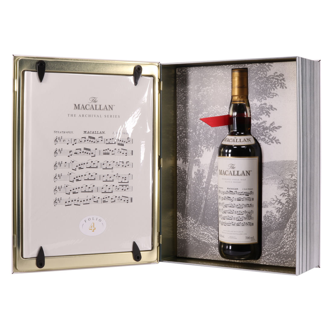 The fourth edition in the Archival Series from The Macallan. Folio 4 remembers the legendary advertising campaigns of the 1970s, 1980s and 1990s that brought The Macallan to the public’s attention outside of Scotland. It is presented in a beautiful book shaped, tin case. It features an advertisement including a Strathspey composed by James Scott Skinner (1843-1927). The advert notes that Skinner was so moved by his favourite malt he created a unique piece of music featuring his signature lilting notes with the simple catchphrase: “The Macallan. The Malt.”