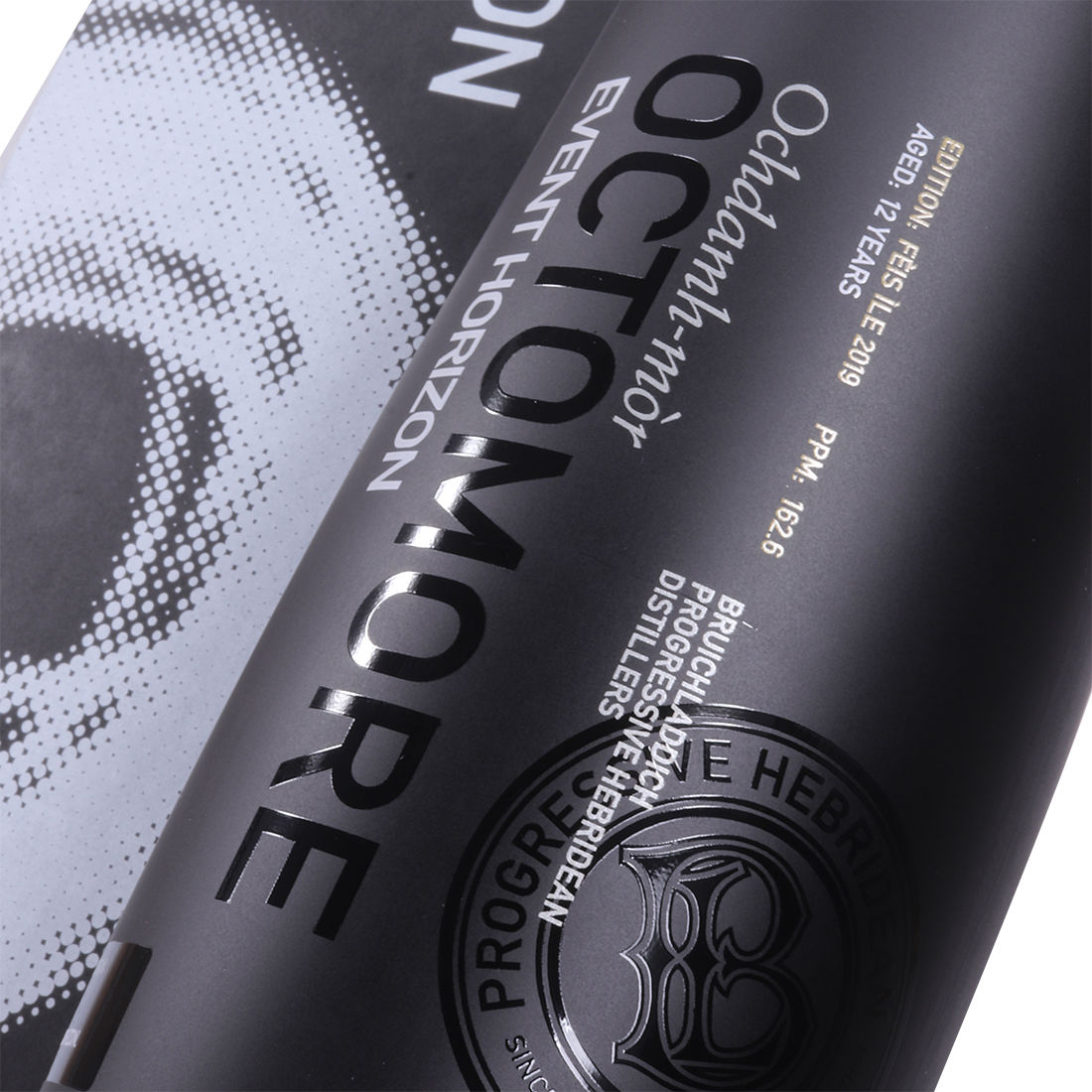 Octomore Event Horizon is the 2019 Fèis Ìle expression from Bruichladdich. It is the oldest Octomore released by the Islay distillery. This is one of only 2,000 bottles of Octomore Event Horizon which were released exclusively at the distillery during the festival and have already sold out completely.