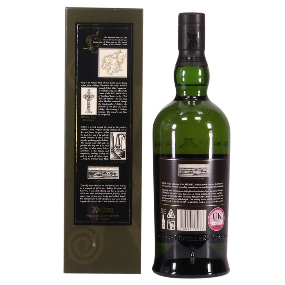 Ardbeg Ten Year Old is known around the world as the peatiest, smokiest, most complex single malt of them all. Yet it does not flaunt the peat; rather it gives way to the natural sweetness of the malt to produce a whisky of perfect balance. Named World Whisky of the Year in 2008.