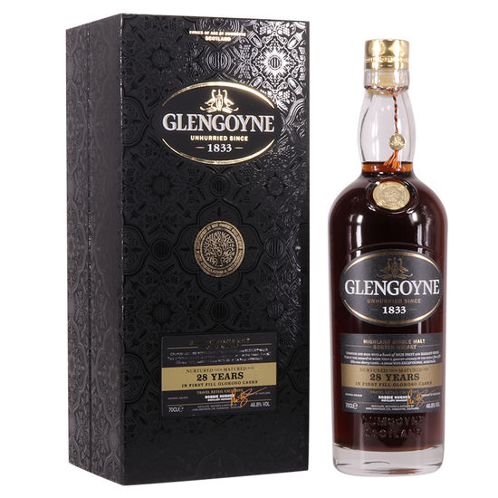 Originally released for the Travel Retail market, this Glengoyne has been matured exclusively in first fill Oloroso sherry casks for 28 years. This Highland single malt was bottled at 46.8% ABV with no additional colouring. It comes presented beautifully in a stylish, black presentation box.