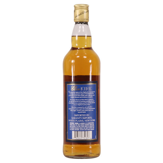 Glen Kirk 8 Year Old Speyside Single Malt. It has been matured in oak casks for a minimum of 8 years and has rich tasting characteristics with a light, smokey peaty palate and smooth finish.
