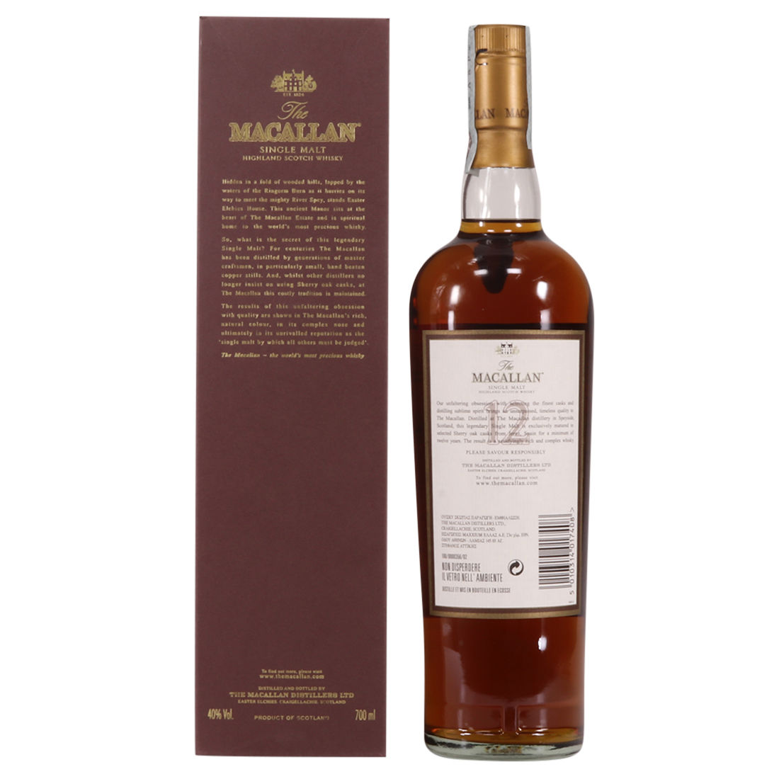 The Macallan 12 Year Old was exclusively matured in selected sherry oak casks from Jerez, Spain.