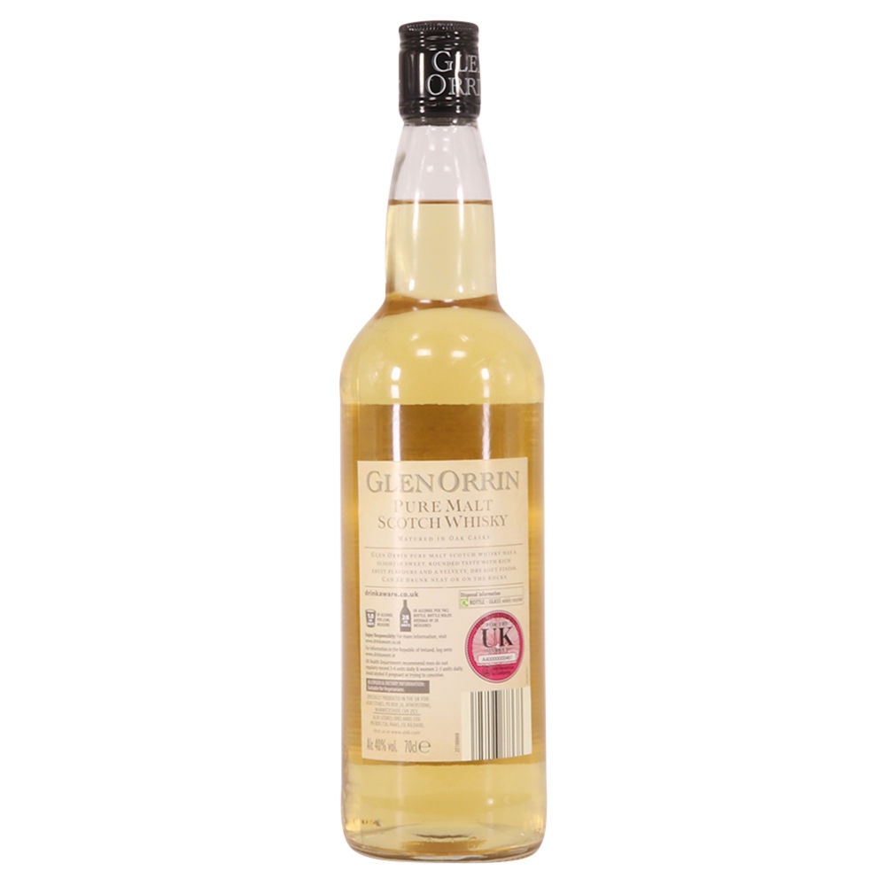 Glen Orrin - This blended malt has been matured in oak casks. It is has a slightly sweet and rounded taste with rich fruit and a dry finish. 70cl, 40% ABV.