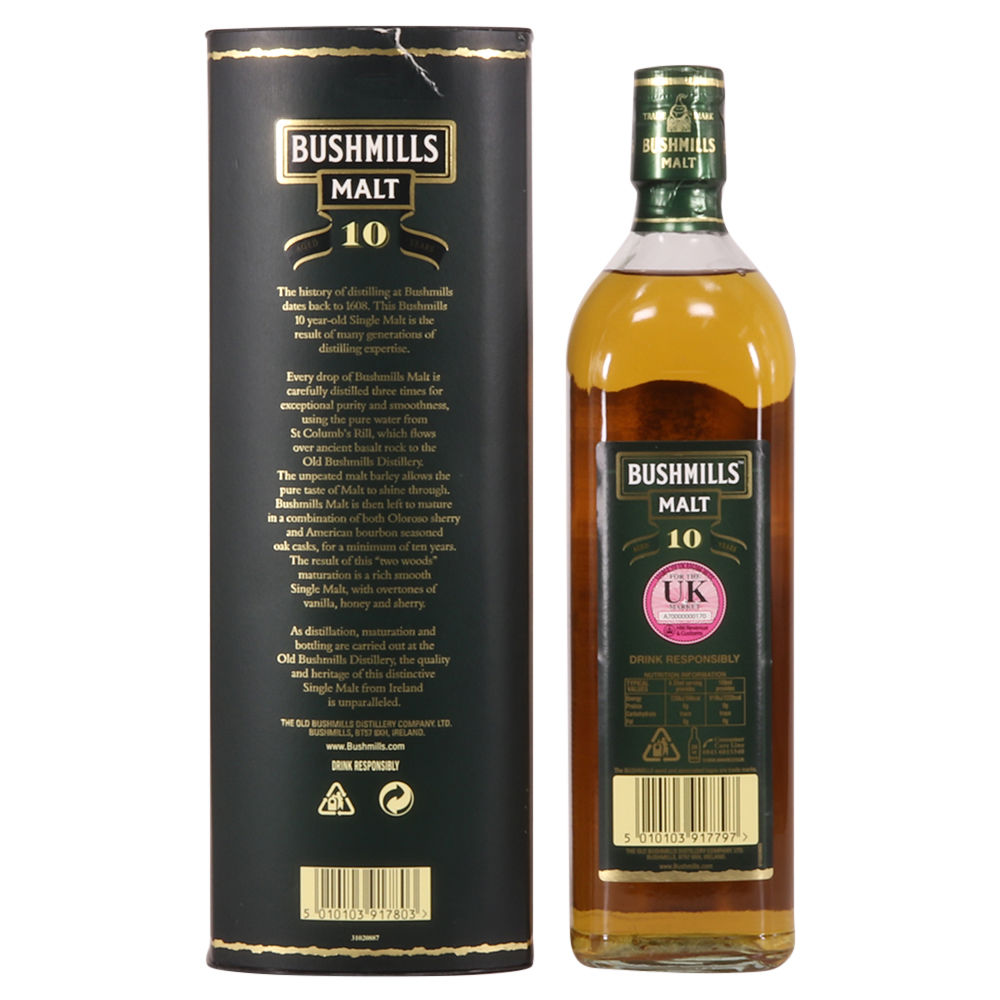 Single malt Irish whiskey, triple distilled and aged 10 years. It was matured in bourbon and oloroso sherry casks for notes of honey, vanilla and ripe fruit.