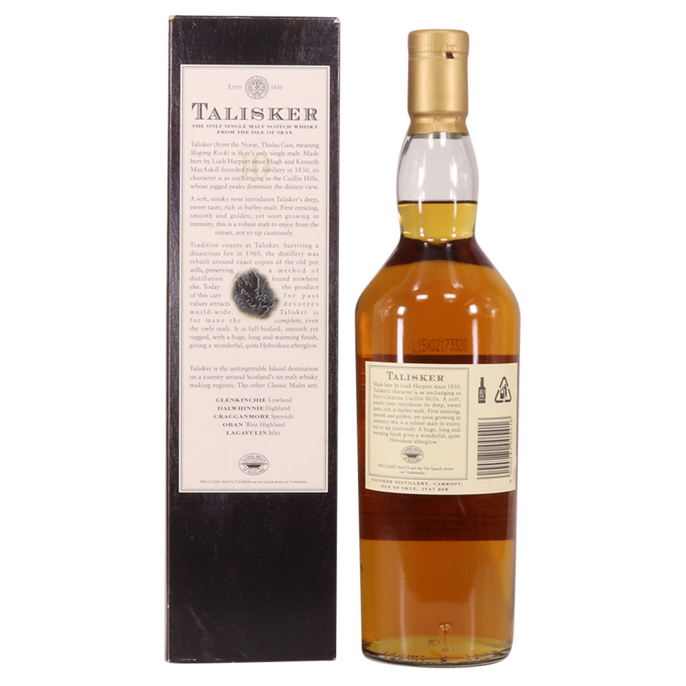 From the Isle of Skye Talisker 10 Year Old from the 1990s.This older style of the packaging features the Isle of Skye mapped on a stone.