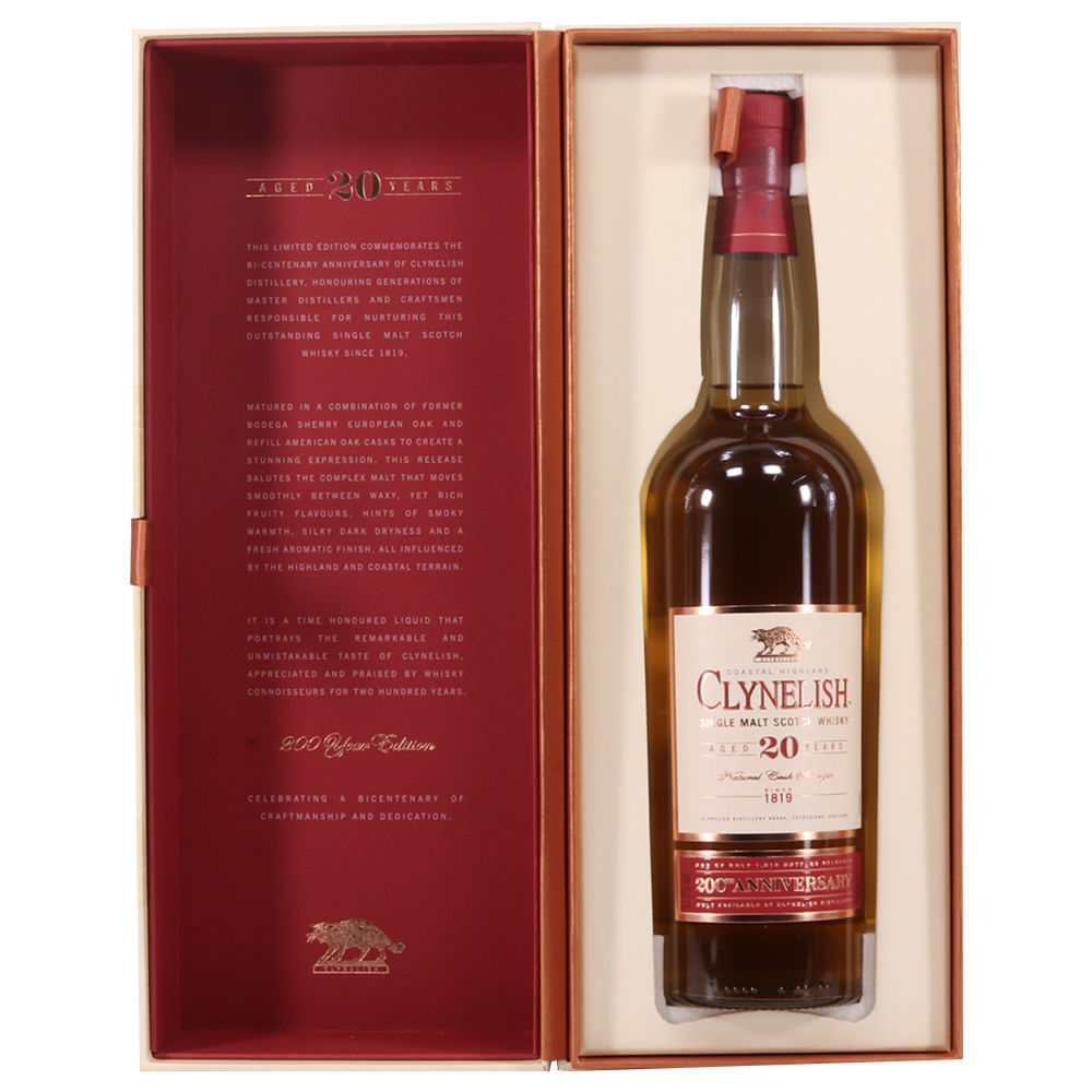Bottled in the highlands, this 20-year-old single malt from Clynelish was bottled to commemorate the distilleries 200th anniversary. In a beautifully presented box this cask strength malt was made only available from the distillery in 2019. It was matured in a combination of Bodega Sherry European Oak and Refill American oak casks to create a stunning expression.