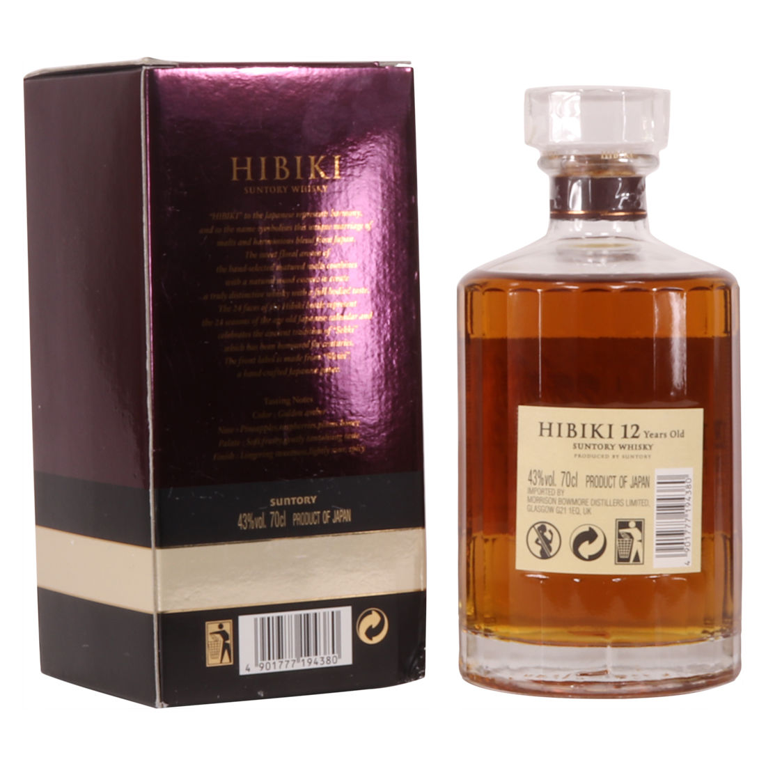 This now-discontinued Hibiki 12 year old is a superb blended Japanese whisky meaning it has become a very popular, rare and collectable bottling. Hibiki includes malt whisky from Yamazaki and Hakushu, as well as grain whisky from Chita. The whisky is partly matured in plum liqueur barrels. Unfortunately, Hibiki 12 was discontinued by Suntory in 2015.