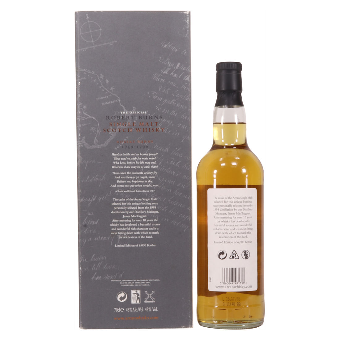 This 1998 vintage single malt was released by the Arran distillery in celebration of the 250th anniversary of Robert Burns' birth, in January 2009.