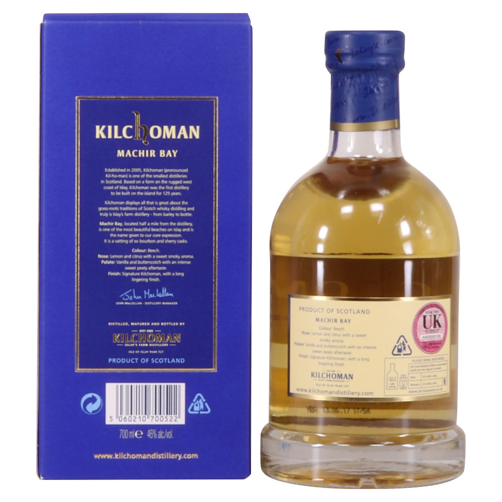 Kilchoman's Machir Bay matured in ex-bourbon barrels and Oloroso Sherry butts.