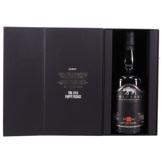 A limited edition from Wolfburn Distillery to commemorate the 100th anniversary of the end of The First World War. A total of 1918 bottles were produced and sold exclusively from the distillery and through the Carnegie Whisky Cellars in Dornoch. This project is important to both companies and was proposed to Wolfburn Distillery due to the owners of Wolfburn being former British Servicemen and the importance of the Poppy Appeal to all service personnel and their families.